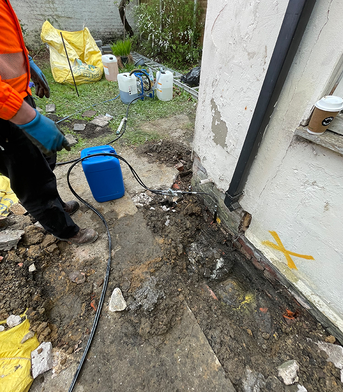 After the initial consultation we send our engineers to your site to make an assessment of your building. We identify the cause of the subsidence and develop a scheme of work stop the subsidence. After thoroughly checking your property, the utilities and the drains we drill a series of small holes through your foundations, usually from the outside of the property. We then insert metal lances from which we pump a mixture of resins which flow freely though any fissures and cracks. The resin sets to a compressive strength similar to a C30 concrete mix which then provides an incredibly strong foundation to protect your home. In some situations the building can also be lifted back into position through the use of powerful expanding resins.